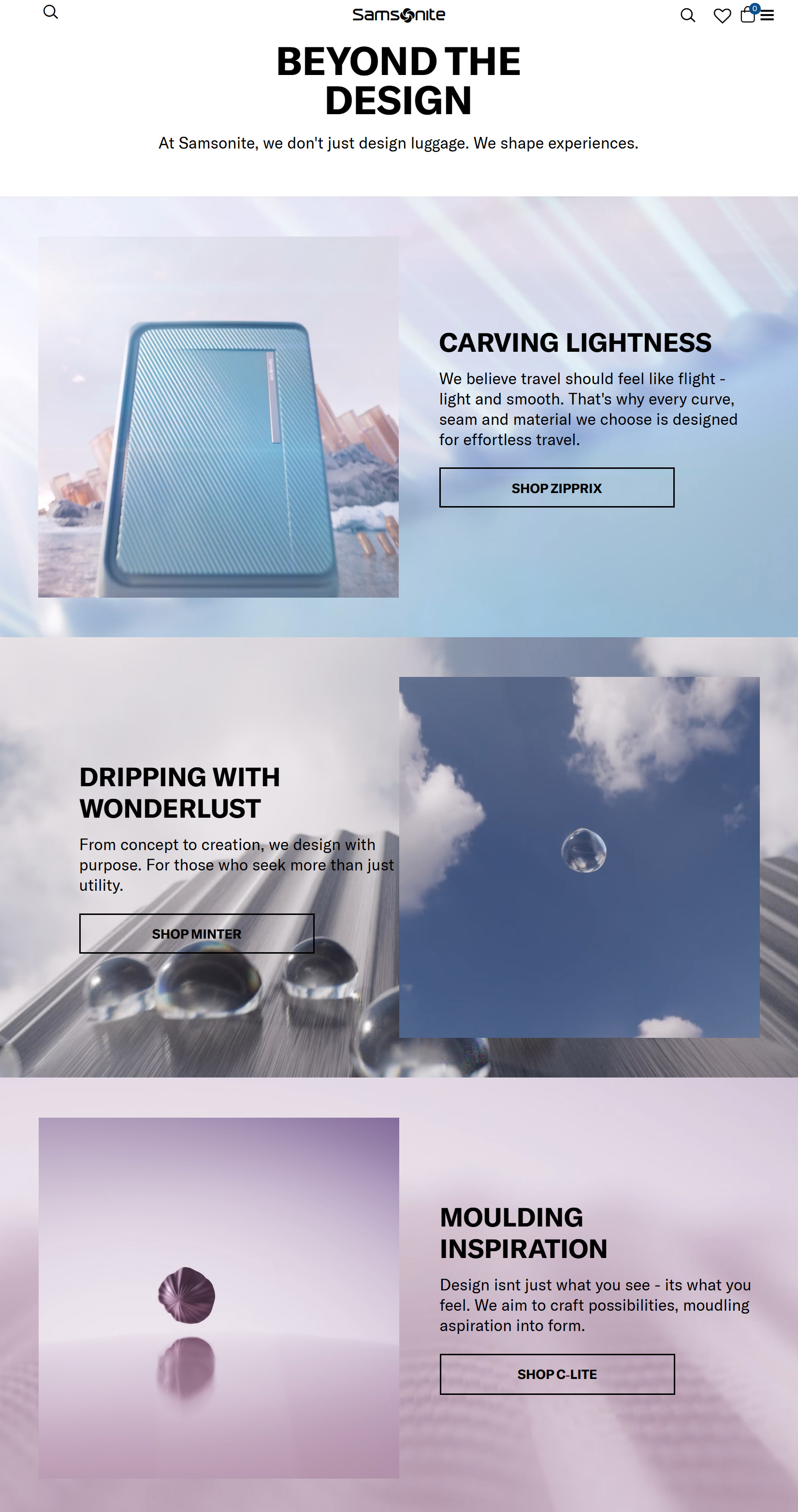 A beautiful piece created while working as a freelance Director at Method & Madness, produced with the help of the amazing team at Tektura, under the creative direction of Douglas Goh, who leads Samsonite APAC. The brief was clear: to show consumers how the suitcases are designed, but in a poetic and imaginative way, as reflected on the Samsonite's site.